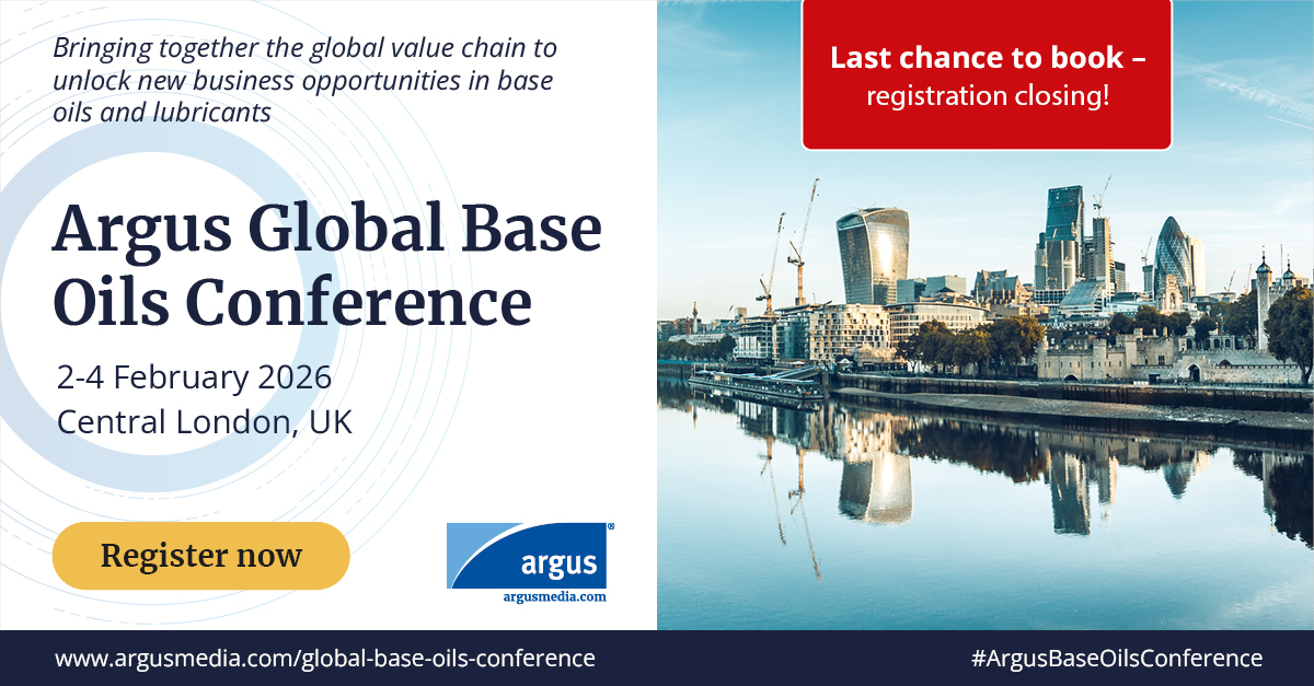 Argus Küresel Baz Yağlar Konferansı, 2–4 Şubat 2026 tarihlerinde küresel baz yağ ve madeni yağ sektörünü Londra’da bir araya getiriyor. Her yıl... Read more.