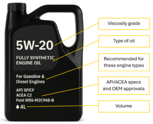 The labels on engine oil containers contain important information about the oil’s technical properties and suitability. Reading the label correctly is key to choosing the right oil.